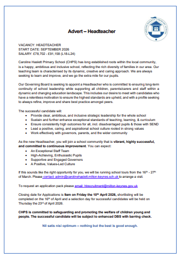 Please see below for our policy on safer recruitment. Current vacancies are listed below, please click for more information.